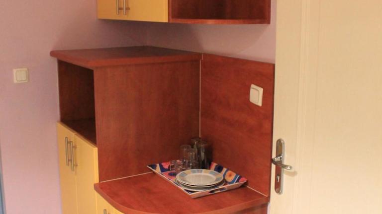 Für die Verpflegung stehen eine Gemeinschaftsküche zur Verfügung sowie die Möglichkeit von Lebensmittellieferungen gegen Aufpreis. Es gibt einen Getränke- und Snackautomaten in der Unterkunft.