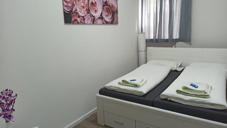 Die Ferienwohnung umfasst 2 Schlafzimmer, eine Küche mit Kühlschrank und Geschirrspüler, einen Flachbild-TV sowie einen Sitzbereich. Das Badezimmer ist mit einer Dusche ausgestattet.
