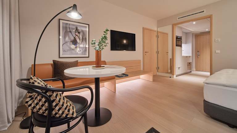 Die klimatisierten Zimmer sind mit einem Queensizebett, einem Sofabett sowie separaten Schlafzimmern ausgestattet. Für das persönliche Wohlfühlklima sorgen eine Heizung und eine Klimaanlage. Jedes Zimmer verfügt über eine Kochnische mit Kühlschrank, Geschirrspüler, Mikrowelle und Tee-/Kaffeekocher. Zusätzliche Annehmlichkeiten umfassen einen Safe, einen Schreibtisch, einen Flachbild-TV und ein eigenes Badezimmer mit Dusche und Badewanne. Allergikerfreundliche Zimmer sind ebenfalls buchbar.