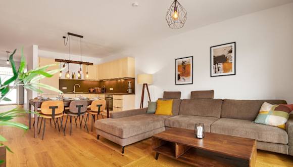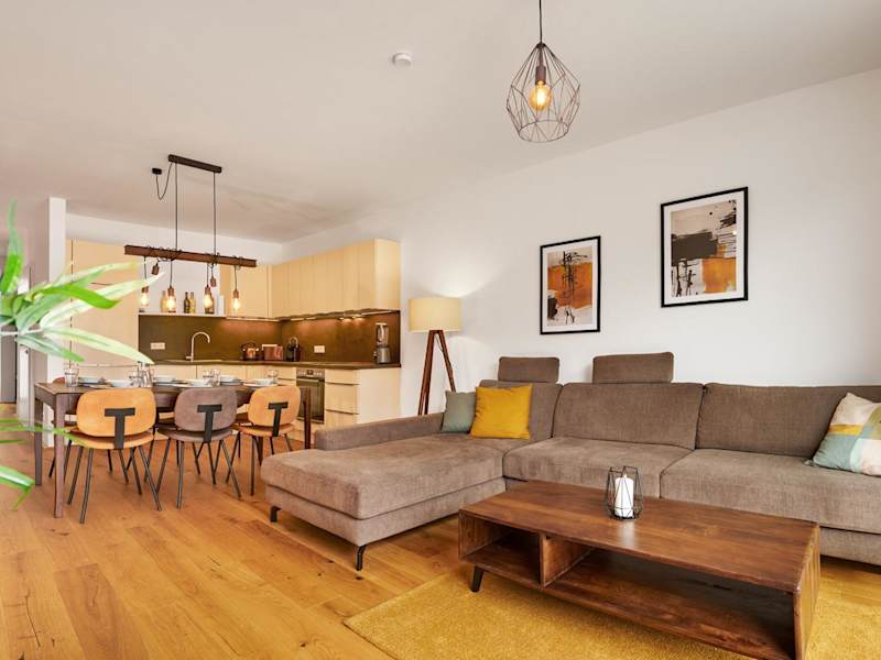 Die Ferienwohnung verfügt über 2 Schlafzimmer, ein heimeliges Wohnzimmer mit TV sowie eine gut ausgestattete Küche mit Kühlschrank und Geschirrspüler. Zudem sind 2 Badezimmer mit Dusche vorhanden.