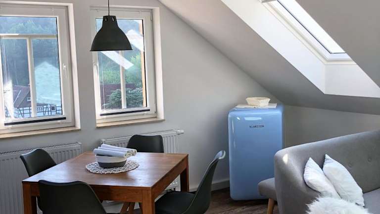 Genießen Sie den atemberaubenden Bergblick und entspannen Sie auf dem Balkon des Adlerhorst. Dieses Apartment bietet Ihnen eine komfortable Unterkunft mit allen Annehmlichkeiten, die Sie für einen angenehmen Aufenthalt benötigen. Die Lage in der Nähe der Festung Königstein und des Nationalparks Sächsische Schweiz macht es zu einem idealen Ausgangspunkt für Wanderungen und Radtouren.