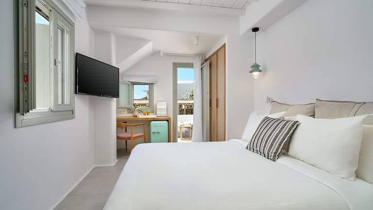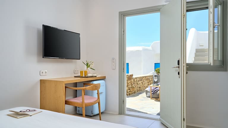 Die Zimmer sind unterschiedlich konzipiert, umfassen Doppelzimmer mit Pool- oder Meerblick und sind mit Annehmlichkeiten wie Klimaanlage, Safe, Flatscreen-TV, Minibar, Dusche und Balkon oder Terrasse ausgestattet. Einige Zimmer bieten zusätzliche Leistungen wie eine Nespressomaschine und direkten Zugang zum Pool.