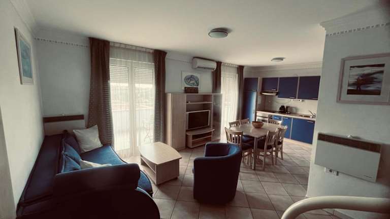Adriatic Apartment in Skiper Resort bietet Übernachtungsmöglichkeiten in einer Ferienwohnung direkt am Strand. Die Unterkunft umfasst Annehmlichkeiten wie einen saisonalen Aussenpool, eine Autovermietung, einen eigenen Strandbereich sowie ein Fitnesscenter. Ein gepflegter Garten lädt ebenfalls zum Verweilen ein.