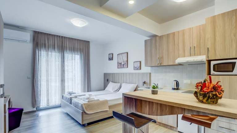 Die klimatisierten Wohneinheiten sind mit einem eigenen Badezimmer ausgestattet, welches über eine Dusche und einen Haartrockner verfügt. Zudem bieten die Apartments einen Flachbild-TV, einen Kleiderschrank, eine ausgestattete Küche, eine Terrasse sowie einen Blick auf die Stadt.