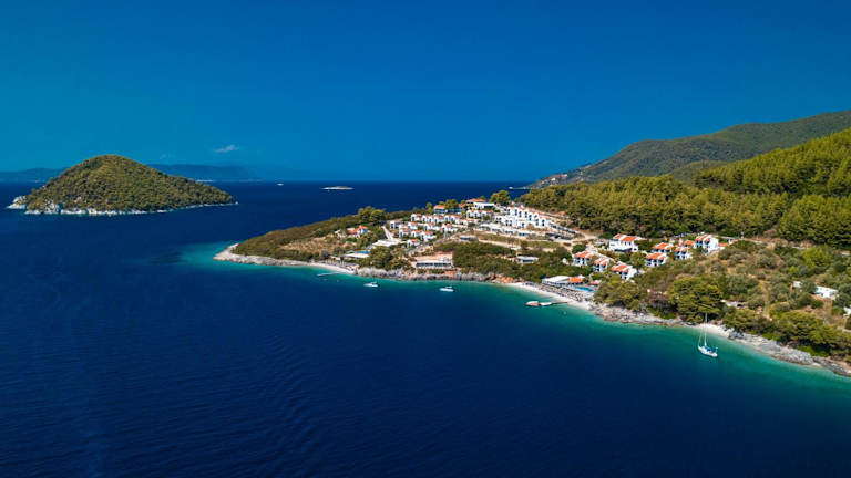 Das Adrina Grand Hotel befindet sich in Panormos Skopelos, nur 900 Meter vom Strand Panormos entfernt. Die Umgebung bietet zahlreiche Möglichkeiten zum Schnorcheln und Velofahren. Der nächste Flughafen ist der Flughafen Skiathos, der in einer Distanz von 28 km erreichbar ist.