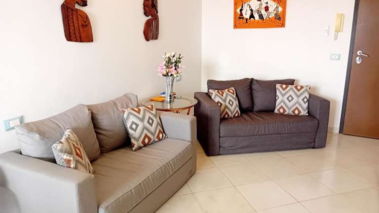 Die Unterkunft bietet einen eigenen Strandbereich, eine Terrasse sowie eine rund um die Uhr besetzte Rezeption. Die Ferienwohnung ist ideal für eine längere Ferienzeit und für Gäste, die vom Remote Working profitieren möchten.