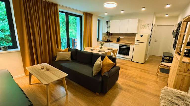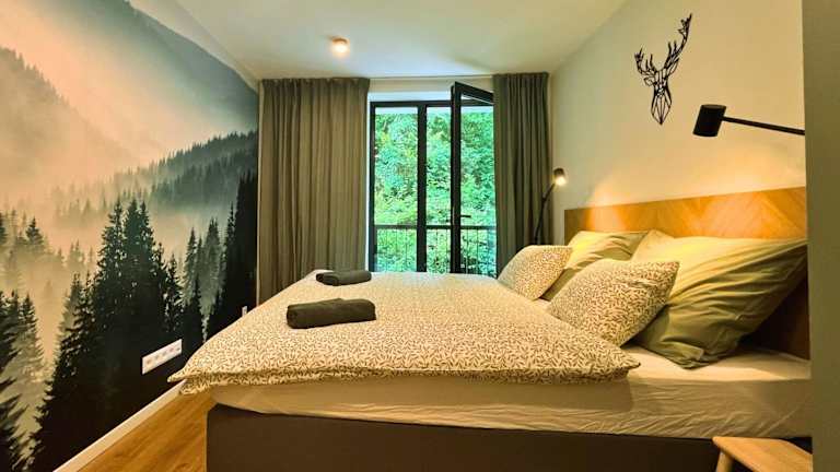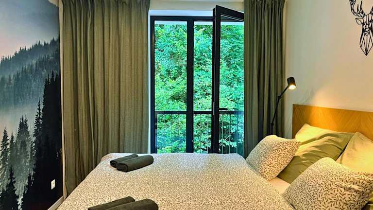 Adventourist - Apartmán Terchová bietet Übernachtungsmöglichkeiten mit Gartenblick, einem Balkon und einem Wasserkocher. Die Ferienwohnung ist mit kostenlosem Privatparkplatz ausgestattet und verfügt über Nichtraucherzimmer, einen Aufzug sowie einen Raum zur Skiaufbewahrung.
