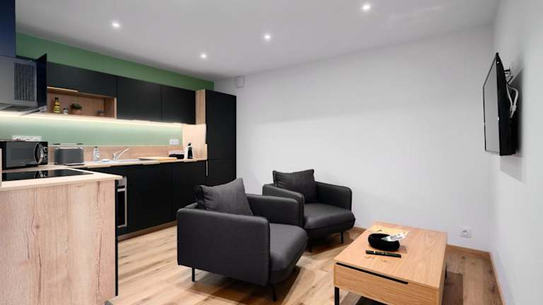 Die Unterkunft verfügt über eine voll ausgestattete Küche, die den Gästen die Zubereitung eigener Mahlzeiten ermöglicht. Grillmöglichkeiten stehen zur Verfügung. Zudem besteht die Möglichkeit, sich Essen in die Unterkunft liefern zu lassen (gegen zusätzliche Gebühren). Es können Snacks in der Gemeinschaftslounge genossen werden.
