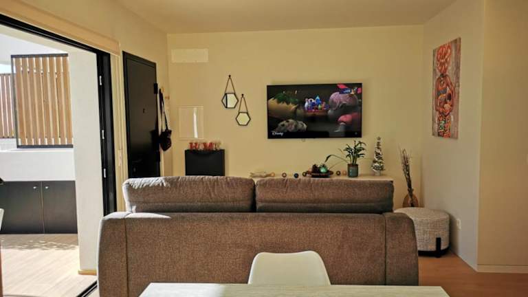 Die Ferienwohnung umfasst 2 Schlafzimmer und ein Wohnzimmer mit einem Flachbild-TV. Sie verfügt über eine gut ausgestattete Küche mit Kühlschrank und Geschirrspüler sowie 2 Badezimmer mit Dusche. Zur Verfügung stehen zudem Handtücher und Bettwäsche.