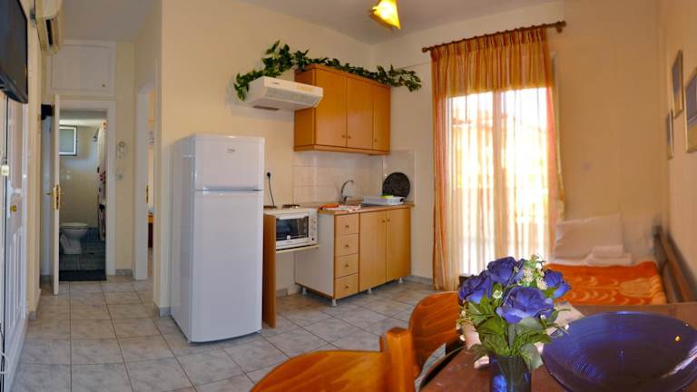 In den Wohnungen der Agapi Apartments finden Gäste eine voll ausgestattete Küche mit einem Esstisch vor, wo sie ihre eigenen Mahlzeiten zubereiten können. Die Küchenausstattung umfasst unter anderem Kühlschrank, Ofen, Herdplatte, Kaffeemaschine und Wasserkocher. Es gibt auch einen Minimarkt vor Ort für die Bequemlichkeit, kleine Einkäufe zu erledigen.