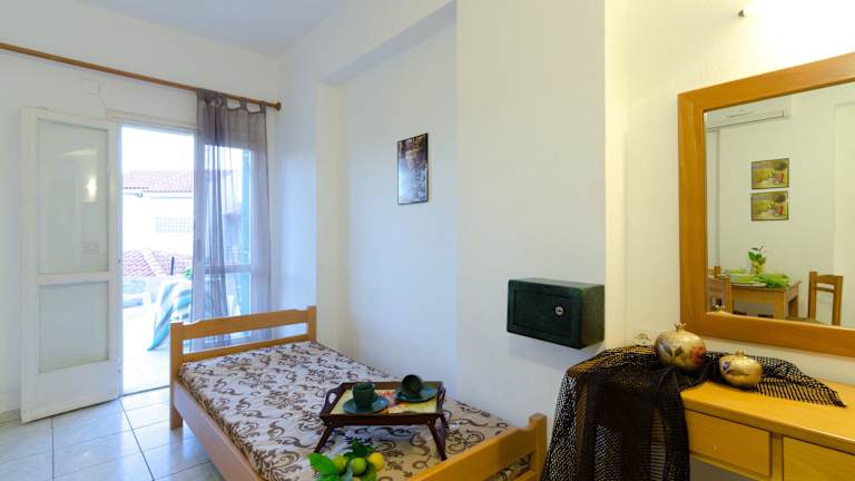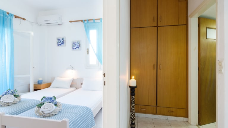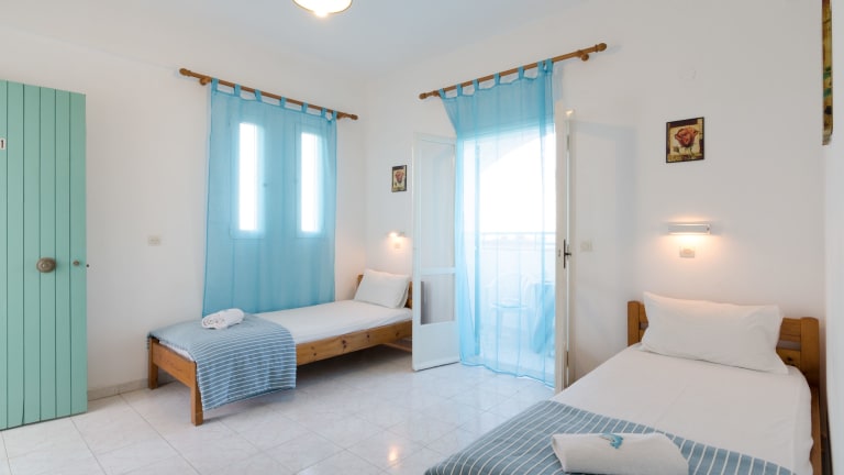 Die Zimmer sind mit einer Klimaanlage, einem Badezimmer mit Dusche und Badewanne sowie einer Kochnische ausgestattet, die einen Kühlschrank, einen Herd und eine Tee-/Kaffeemaschine umfasst. Zudem verfügen die meisten Zimmer über einen Balkon und ein Doppelbett. Zustellbetten können auf Anfrage bereitgestellt werden. Ein Telefon, WLAN und ein Safe sind ebenfalls vorhanden.