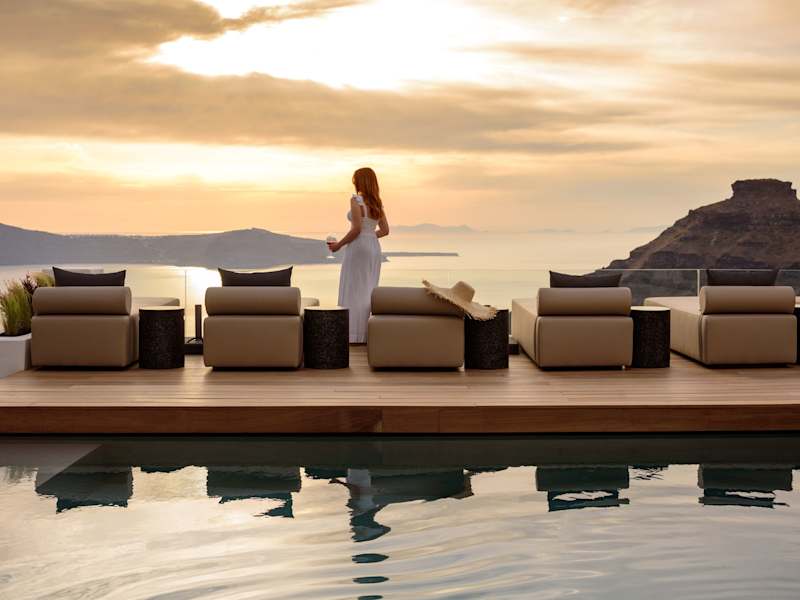 Die Agnadema Apartments befinden sich im Herzen von Firostefani, nur 900 m vom Zentrum von Fira entfernt. Es erwartet Sie ein atemberaubender Panoramablick auf den Vulkan sowie den berühmten Berg Skaros. Der malerische Weg zum Zentrum führt entlang der Caldera-Klippen und bietet Ihnen eindrückliche Ausblicke auf die tiefblaue Ägäis.