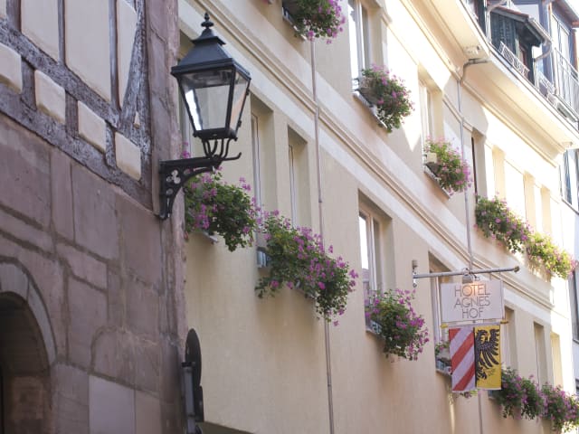 Ruhig und äußerst zentral im historischen Stadtzentrum, alle Ziele sind zu Fuß erreichbar. Zum Christkindlesmarkt sind es nur 3 Minuten. Dürerhaus, Kaiserburg, Bratwurstküchen, Bierlokale und Restaurants liegen in unmittelbarer Nachbarschaft. Entfernungen und Parken Bus 36/Haltestelle Burgstraße: 200 m U-Bahn U1/Station Lorenzkirche: 600 m U-Bahn U2/Station Rathenauplatz: 1 km Messe Nürnberg: 7 km, U1 Direktanbindung Flughafen Nürnberg: 8 km, U2 Direktanbindung ICE-Bahnhof: 1,5 km Christkindlesmarkt (Hauptmarkt): 300 m Kaiserburg: 400 m Autobahn A3/Abfahrt Tennenlohe: 10 km Hoteltiefgarage* Parkgebühr: EUR 16,00 Öffentliches Parkhaus Hauptmarkt: 100 m *Maximale Durchfahrtshöhe 1,50 m. Für Vans, Jeeps und Autos mit 5,00 m Länge ist unsere Tiefgarage nicht geeignet.