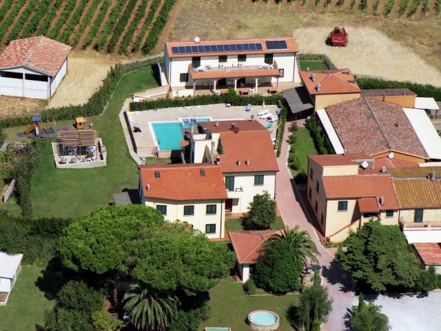 Borgo Guglielmo ist eine Ferienanlage auf dem Land, ca. 500 m von San Pietro in Palazzi entfernt, einem kleinen Vorort von Cecina. Der Ort befindet sich im Herzen der Etruskerküste, einer der bezauberndsten Gegenden der Toskana. Die Entfernung zum Meer, mit Sandstränden und Pinienwäldern, beträgt nur ca. 3,5 km. Borgo Guglielmo ist durch ihre Lage der ideale Ausgangspunkt um den vielen interessanten Sehenswürdigkeiten der Toskana eine Besuch abzustatten: Kunststädte (Florenz, Siena, Pisa, Lucca, ...), mittelalterliche Orte (San Gimignano, Volterra, Massa Marittima, Suvereto, Casale Marittimo, Bolgheri ...), Thermen, Naturparks, archäologische Ausgrabungsstätten, Vergnügungsparks, die Insel Elba, die Weinstraße (einer der berühmtesten Weine ist der Sassicaia). Der Flughafen Pisa (Ryanair und andere Low-Cost-Fluglinien) ist nur 40 km entfernt. Wir erwarten Sie!