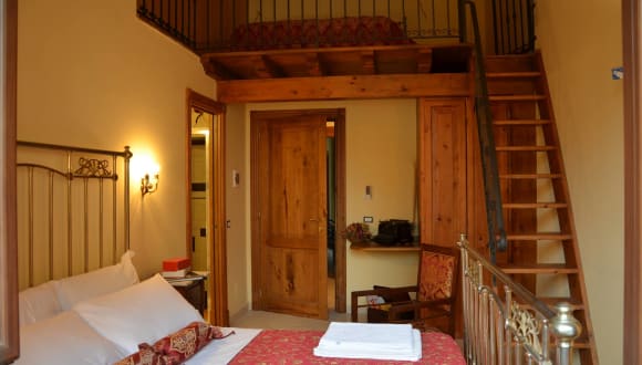 Nell'antico casale del '700 sono stati impiegati materiali naturali come legno e pietra, arredi d'epoca in stile Liberty e i caldi colori mediterranei. Le camere climatizzate dispongono di TV e bagno.