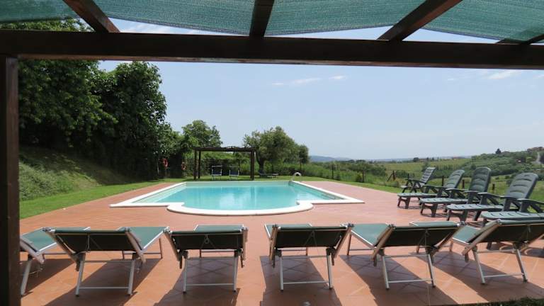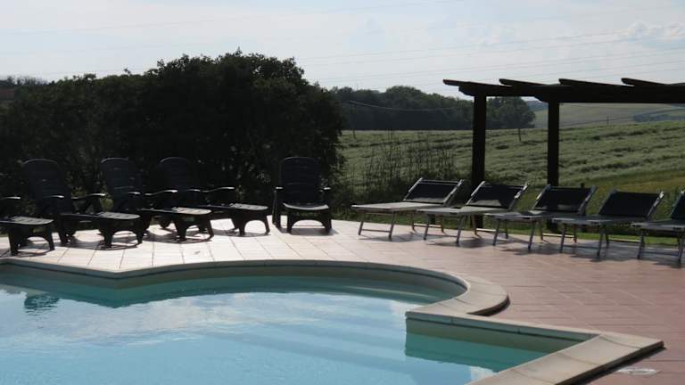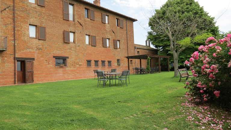 Die Unterkunft Agriturismo Borgo Del Papa befindet sich in Badia und bietet einen Blick auf den saisonalen Aussenpool. Die Umgebung ist von einer schönen Gartenlandschaft geprägt und lädt zur Erholung ein.