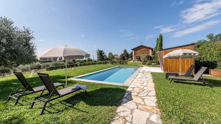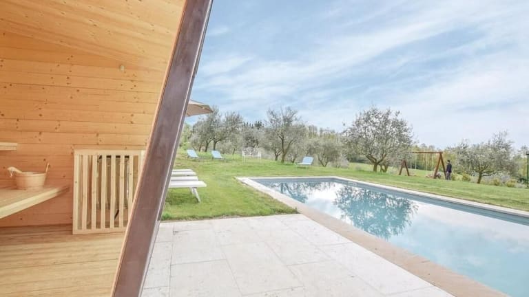 Agriturismo Dolce Colle bietet eine einladende Atmosphäre mit einem Garten, einem Aussenpool und Zugang zu einem Sauna- und Whirlpoolbereich. Die Umgebung bietet verschiedene Möglichkeiten für Sport und Freizeit, darunter Skifahren und Velofahren.