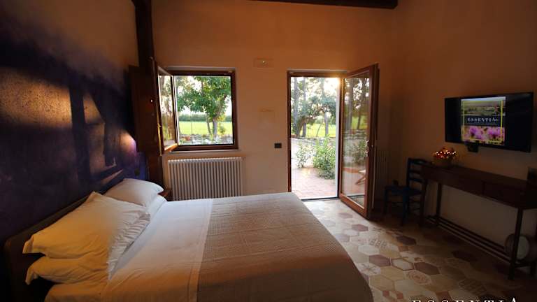 Die Zimmer im Agriturismo Essentia dimora rurale sind komfortabel und gemütlich eingerichtet. Jedes Zimmer verfügt über ein eigenes Bad mit Bidet, Klimaanlage, einen Flachbild-TV und einen Kühlschrank. Genießen Sie eine erholsame Nacht und fühlen Sie sich wie zu Hause.