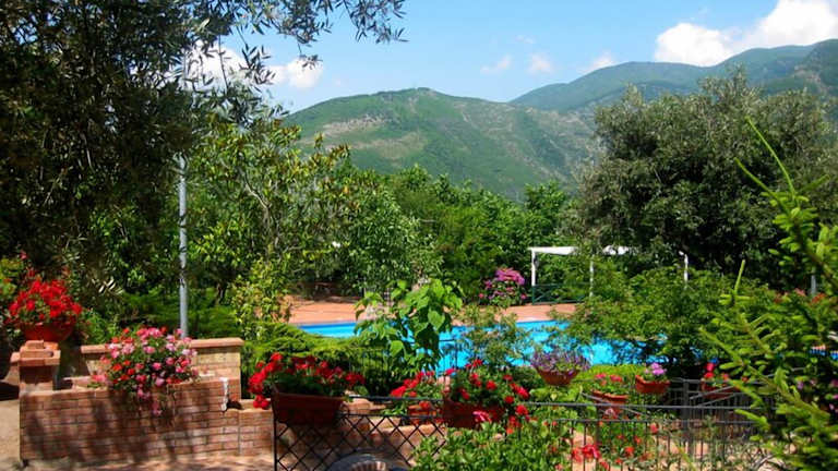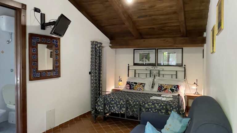 Das Agriturismo La Casa Del Ghiro befindet sich in den malerischen Hügeln Neapels, eingebettet zwischen Pompeji und Sorrent. Die Umgebung ist geprägt von Weinbergen und Olivenhainen, die einen wunderschönen Blick auf die Wälder des Monti Lettari bieten.