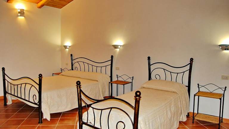 Die Zimmer sind im eleganten Landhausstil eingerichtet, mit Holzbalkendecken und schmiedeeisernen Betten. Jedes Zimmer ist klimatisiert, verfügt über einen LCD-Sat-TV und eine eigene Terrasse.