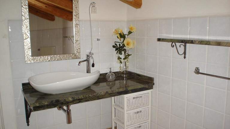 Die Zimmer sind mit einem voll ausgestatteten eigenen Badezimmer ausgestattet, das eine Dusche und einen Haartrockner umfasst.