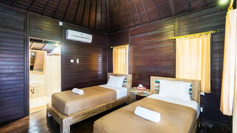 Die Unterkunft liegt weniger als 10 Meter vom Strand Jungutbatu entfernt und befindet sich in unmittelbarer Nähe zu mehreren bekannten Orten, wie dem Paradise Beach, welcher 600 Meter entfernt ist. Auch Mangrove Beach ist mit etwa 1,6 km bequem erreichbar, während Panorama Point zirka 2 km entfernt liegt. Der nächstgelegene Flughafen, der Flughafen Ngurah Rai, ist 82 km entfernt.