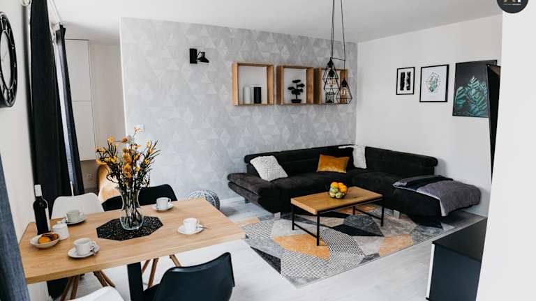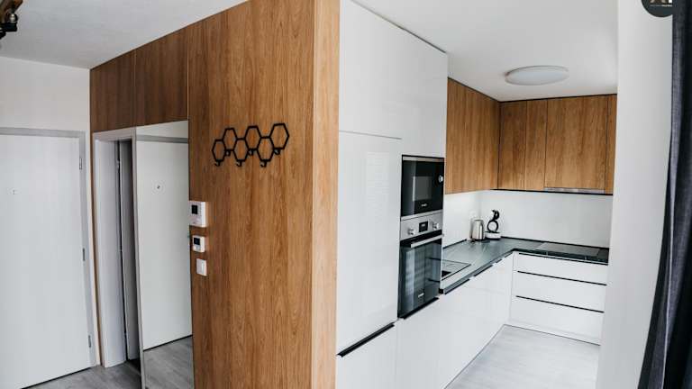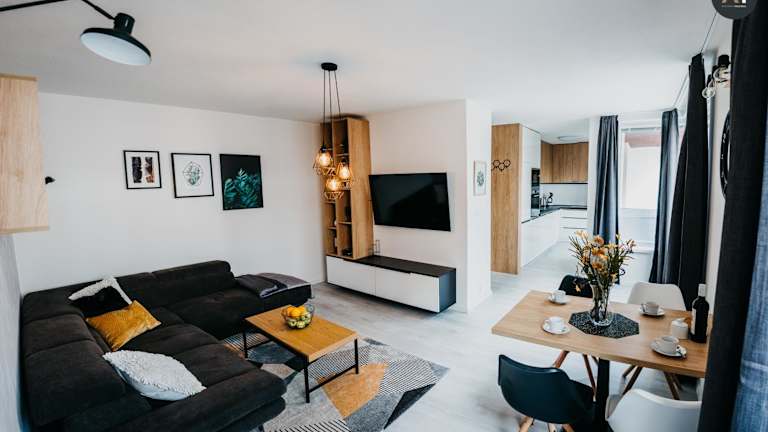 Die Ferienwohnung ist mit einem Schlafzimmer, einem Wohnzimmer mit einem Flachbild-TV, einer voll ausgestatteten Küche und einem Badezimmer versehen. Bettwäsche, Handtücher und Wäsche werden nach den Richtlinien der örtlichen Behörden gewaschen und die Unterkunft wird zwischen den Aufenthalten desinfiziert.