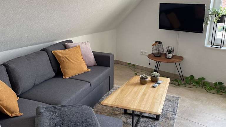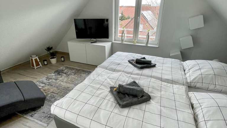 Die Ferienwohnung verfügt über ein Schlafzimmer, ein Wohnzimmer mit Flachbild-TV sowie eine gut ausgestattete Küche mit Kühlschrank und Geschirrspüler. Das Badezimmer ist mit einer Dusche ausgestattet. Handtücher und Bettwäsche werden zur Verfügung gestellt.