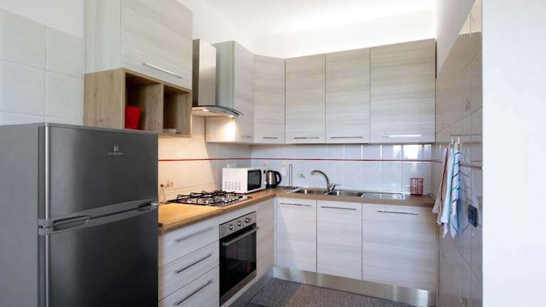 Die Ferienwohnung verfügt über 2 Schlafzimmer, ein Wohnzimmer, einen TV und eine gut ausgestattete Küche mit Kühlschrank und Geschirrspüler. Zudem besitzt die Unterkunft ein Badezimmer mit Dusche. Handtücher und Bettwäsche werden zur Verfügung gestellt. Ein Balkon mit Gartenblick ergänzt die Bequemlichkeit der Unterkunft.