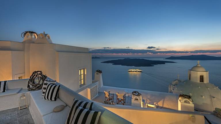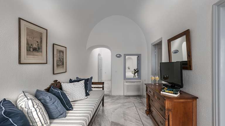 Die Siedlung ist günstig am Rande der Stadt Fira gelegen und bietet eine ruhige Umgebung im entspannenden Teil von Fira, der Hauptstadt der Insel Santorin. Das Stadtzentrum ist in Gehweite erreichbar und die Umgebung bietet eine Vielzahl an Aktivitäten, darunter preisgekrönte Restaurants, Sehenswürdigkeiten, Strandsportarten und kulturelle Veranstaltungen. Der Exo-Gyalos-Strand liegt etwa 3 km vom Hotel entfernt und der Flughafen Santorin (Thira) ist rund 6 km entfernt.