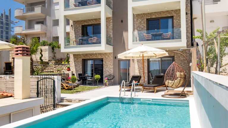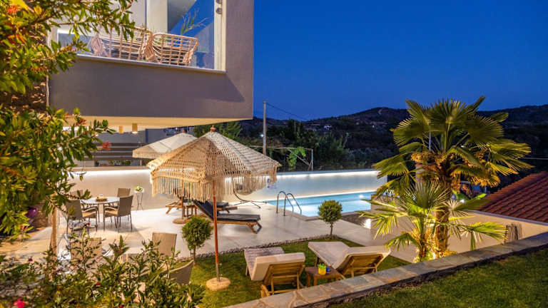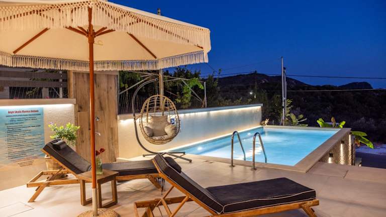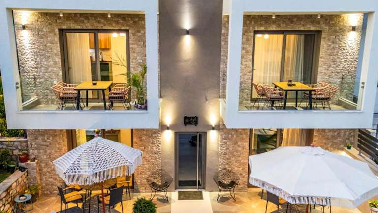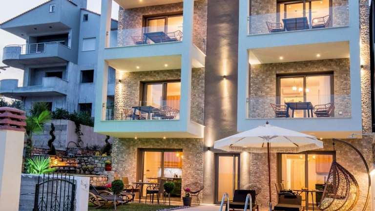 Aigli Skala Maries Deluxe bietet ihren Gästen Wohneinheiten mit kostenlosem WLAN und Klimaanlage. Ein saisonaler Aussenpool und ein Garten sorgen für eine angenehme Atmosphäre. Die Unterkunft verfügt über eine Terrasse mit Stadtblick und verschiedene Einrichtungen für die Selbstversorgung.
