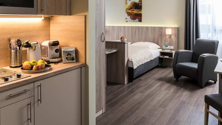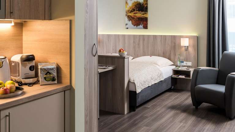 Die Zimmer und Suiten im AINO Aparthotel Olympiapark sind mit einem Flachbild-TV und einer Küchenzeile ausgestattet. Zu den Küchenutensilien zählen eine Mikrowelle, ein Kühlschrank, ein Kochfeld und eine Kaffeemaschine. Jedes Zimmer verfügt über ein eigenes Bad mit Dusche. Handtücher und Bettwäsche sind vorhanden.