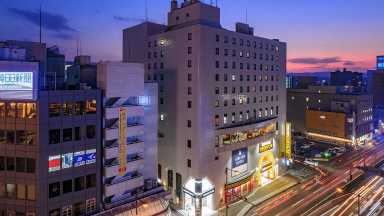 Das Airline Hotel liegt in Miyazaki, weniger als 1,2 km vom Bahnhof Miyazaki entfernt. Zu den Attraktionen in der Nähe gehören der Zoo Miyazaki Phoenix, der 11 km entfernt ist, und der Themenpark Kodomo-no-Kuni, der sich 16 km vom Hotel befindet. Aoshima Shrine liegt 18 km entfernt, während der Horikiri Pass 20 km entfernt ist. Der Flughafen Miyazaki befindet sich in einer Distanz von 6 km.
