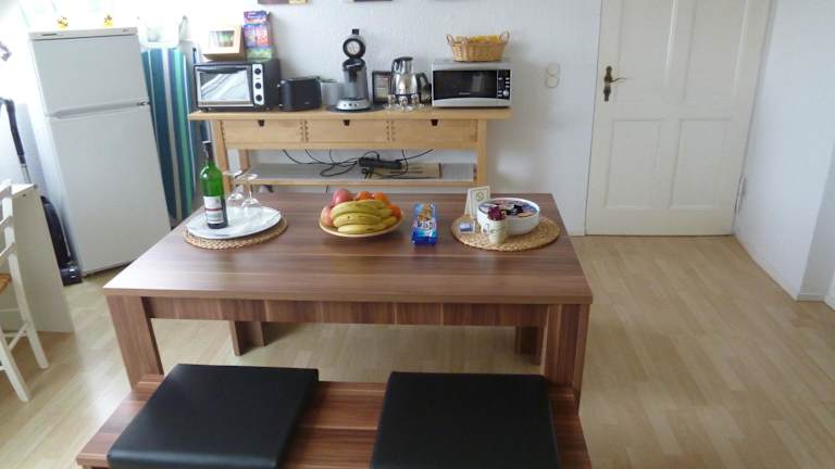 Die Ferienwohnung besteht aus einem Schlafzimmer, einem Wohnzimmer mit Flachbild-TV und einer gut ausgestatteten Küche mit Kühlschrank und Ofen. Das Badezimmer verfügt über eine Dusche. Handtücher und Bettwäsche werden bereitgestellt.