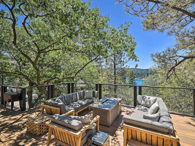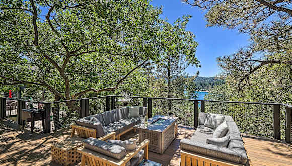Airy Alpine Getaway with Lake Arrowhead Views! bietet ein heimeliges Ferienhaus mit einem Spa- und Wellnesscenter. Die Unterkunft verfügt über eine Klima-anlage und umfasst 4 Schlafzimmer, ein Spielzimmer sowie eine gemütliche Atmosphäre. Haustiere sind nicht gestattet, und es sind keine Feierlichkeiten wie Junggesellenabschiede erlaubt.