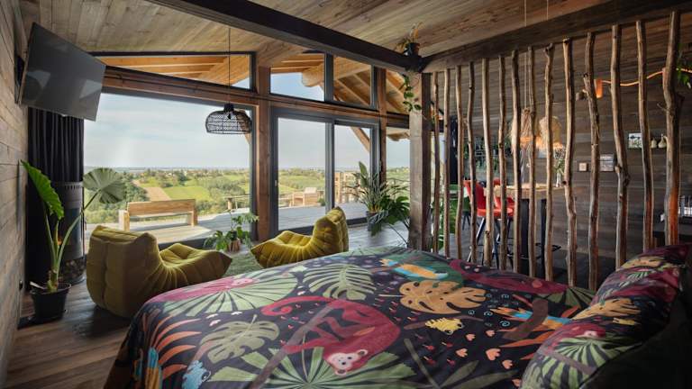Die Villa im AISLAMIENTO, Luxus faház verfügt über ein Schlafzimmer, ein Badezimmer, eine voll ausgestattete Küche und einen gemütlichen Essbereich. Die Unterkunft ist modern eingerichtet und bietet kostenfreies WLAN, Klimaanlage und einen Flachbild-Kabel-TV. Von der Terrasse aus haben Sie einen herrlichen Blick auf die umliegenden Berge. Bettwäsche und Handtücher werden gestellt.