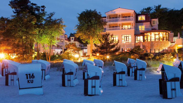 Zwischen idyllischen Buchenwäldern und der Strandpromenade befindet sich das elegante Travel Charme Strandhotel Bansin. Die Lobby der 4-Sterne-Superior-Unterkunft ist als repräsentative Rotunde mit transparenter Glaskuppel gestaltet. Das Hotel offeriert 100 Zimmer und Suiten, die überwiegend über einen Balkon oder eine Terrasse verfügen. Prunkstück der Wohneinheiten sind zwei exklusive Penthouse-Suiten mit großzügiger Dachterrasse, von der man einen prächtigen Blick auf die Ostsee hat. Die Grundausstattung umfasst Schreibtisch, LCD-Fernseher, Minibar, Safe und kostenloses WLAN. Die mehrsprachige Rezeption ist 24 Stunden besetzt. Im opulenten Spa-Bereich des Travel Charme Strandhotel Bansin erwartet Sie ein imposanter Indoor-Panorama-Pool, eine Saunalandschaft sowie eine Vielzahl von Massagen und kosmetischen Behandlungen. Das reichhaltige Frühstücksbuffet ist inklusive. Mehrere Restaurants sorgen für kulinarischen Hochgenuss, darunter das Gabbiano, das den Gast mit mediterraner Küche und erlesenen Weinen verwöhnt. Im Café & Bar kann man Getränke und Eis genießen. Zur Sternwarte und zum Schloss Pudagla sind es mit dem Auto jeweils zehn Minuten.