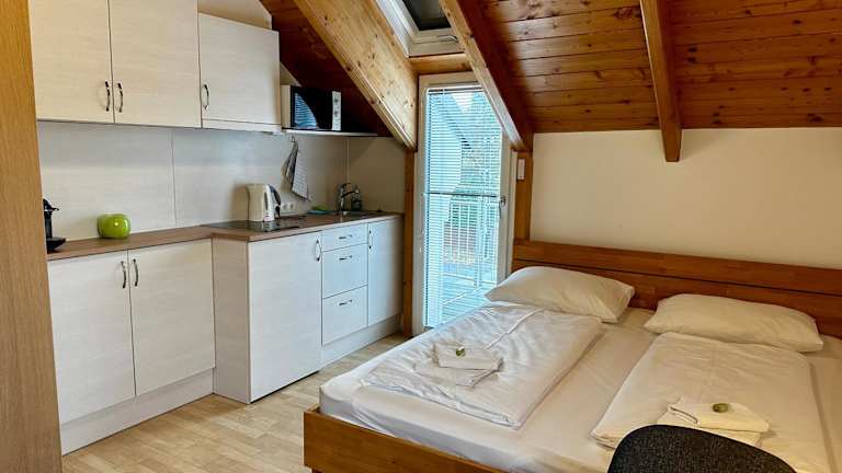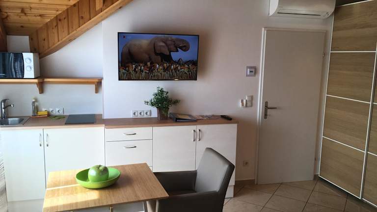 Die Zimmer sind mit einer Küchenzeile ausgestattet, die einen Kühlschrank, eine Mikrowelle, eine Herdplatte, eine Kaffeemaschine und einen Wasserkocher umfasst. Für die Nutzung der Klimaanlage wird ein Aufpreis erhoben. Die Zimmergestaltung kann von den gezeigten Fotos abweichen.