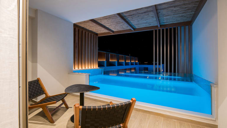 Das Hotel bietet eine Vielzahl von Zimmerkategorien, darunter die Azure Suite mit Meerblick und Whirlpool, Doppelzimmer mit Balkon oder Terrasse sowie Suiten mit Zugang zu einem eigenen Plunge Pool. Alle Zimmer sind Nichtraucherzimmer und verfügen über Annehmlichkeiten wie Klimaanlage, Safe, Fernseher und WLAN.