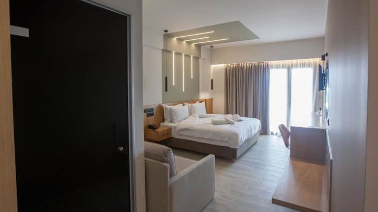 Alle Zimmer in der AKROTHEA suites & lounge sind mit Klimaanlage, Schreibtisch, Flachbild-TV, eigenem Badezimmer, Bettwäsche und Handtüchern ausgestattet. Jedes Zimmer verfügt über einen Balkon mit Blick auf den Pool und bietet zudem einen Kühlschrank.