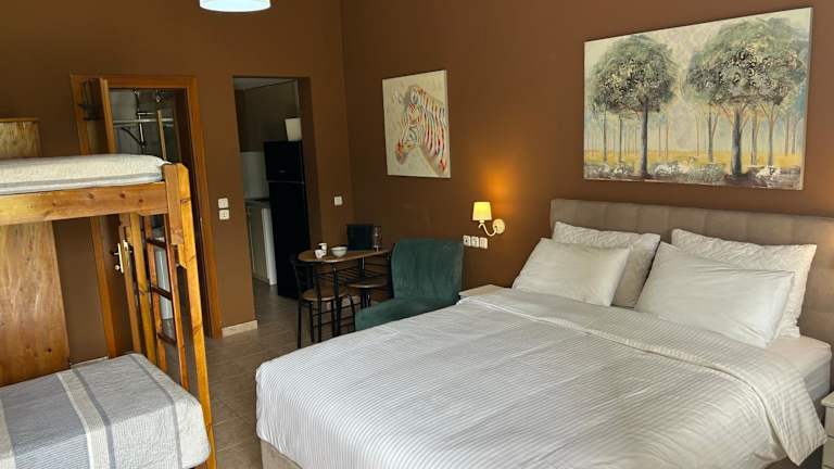 Akrotiri Studios bietet Übernachtungsmöglichkeiten mit kostenlosem Wifi und Klimaanlage, umgeben von einem einladenden Garten. Die Struktur ist privat geführt und es sind keine Junggesellen- oder ähnliche Feiern erlaubt. Der Check-in ist von 15:00 bis 21:00 Uhr möglich, der Check-out von 08:00 bis 11:00 Uhr, wobei das Mindestalter für den Check-in 18 Jahre beträgt.
