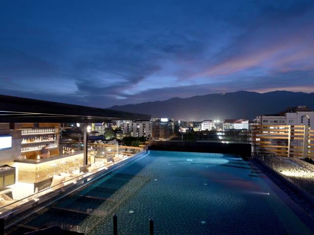 Yoga Unterricht findet auf Anfrage statt. Der Infinity Pool auf der Dachterrasse bietet Erfrischung und gleichzeitig einen einmaligen Blick über Chiang Mai. Ein Fitness Center steht ebenfalls zur Verfügung