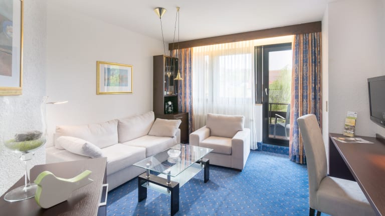 Mit guter Laune in den Tag Die Zimmer, Junior- Suiten und Appartements haben den Komfort, der Ausspannen und erholsamen Schlaf verspricht. Und natürlich all das was bequemes Wohnen garantiert: Bad/Dusche, WC, Sat-TV, Radio, Telefon, W-Lan Anschluss, Minibar, Wertfach, Haartrockner, Hosenbügler und überwiegend Balkon.