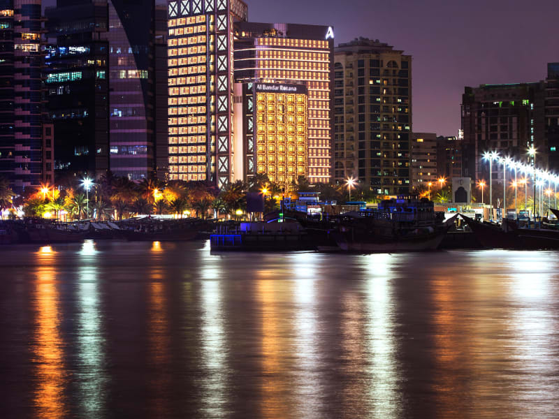 Das Al Bandar Arjaan by Rotana ist eine luxuriöse Hotel-Apartmentanlage, die sich in einem der bekanntesten Gewerbegebiete der Stadt an der Nordküste des Dubai Creek befindet. Dieses moderne, architektonisch beeindruckende Anwesen steht in Verbindung mit dem Fünf-Sterne-Al Bandar Rotana und bringt ein neues Reiseziel für Business und Freizeit am New Creek hervor. Das Küstenanwesen liegt nur wenige Fahrminuten vom internationalen Flughafen Dubai, dem Dubai World Trade Centre und dem Botschaftsviertel entfernt und befindet sich naheliegend der bedeutendsten Touristenattraktionen, von Einkaufszentren und Suqs, bis hin zu Museen und Parks. Auch des neue, design-orientierte Rise Dubai Creek Hafen-Projekt ist nächstgelegen und bietet Live-Musik, DJ Sets, Filmvorführungen und außergewöhnliche Gastronomiekonzepte. Die 90 komplett ausgestatteten Studios und Apartments des Al Bandar Arjaan by Rotana wurden den Ansprüchen von Dauergästen entsprechend gestaltet. Die Optionen reichen von geräumigen Studios bis hin zu Drei-Schlafzimmer-Apartments, die alle mit moderner Technologie und Wohnkomfort ausgestattet sind und den Gästen bei ihrem Langzeitaufenthalt im Großstadtleben eine stressfreies Erlebnis bieten. Das Al Bandar Arjaan by Rotana teilt sich mit dem Al Bandar Rotana fünf internationale Restaurants, die Gästen eine große gastronomische Auswahl während ihres Aufenthalts bieten. Für wahren Hochgenuss sind Sie im Italienischen Restaurant Gusto, mit saisonalen, authentischen Gerichten und dem Morgan's Gastropub, dem einzigen Gastropub der Gegend, genau richtig. Das ganztägige Restaurant Salt & Pepper bietet sich ideal für eine zwangslose Mahlzeit an, während die Vanilla Lobby Lounge der Ort ist, um Tee, Kaffee und Snacks zu genießen. Alle Outlets verfügen über eine Außenterrasse und versprechen atemberaubende Ausblicke auf die Bucht und die Skyline Dubais. Erfrischende Drinks und Snacks stehen auch in The Deck Pool Lounge für Sie bereit, während Ihnen das In-room dining rund um die Uhr zur Verfügung steht. Für Meetings und Veranstaltungen bietet das Hotel sieben komplett ausgestattete Räumlichkeiten, nach Belieben mit natürlichem Tageslicht, von denen alle über flexible Sitzanordnungen und audiovisuelle Technologie auf dem neuesten Stand verfügen. Ihr Bedürfnis nach Fitness und Wellness wird im angrenzenden Fünf-Sterne-Hotel Al Bandar Rotana gedeckt, dessen Freizeiteinrichtung der Bodylines Fitness & Wellness Club, sowohl mit einem modernen Fitnessstudio mit Herz-Kreislauf-Bereich und Kraftraum, als auch mit einem Swimmingpool und Sauna, Dampfbad und Massageräumen, ausgestattet ist.