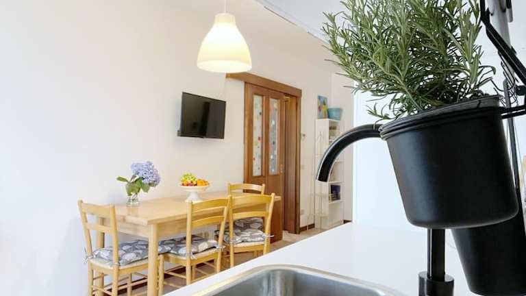 Die Ferienwohnung umfasst ein Schlafzimmer und ein Wohnzimmer. Sie ist mit einer voll ausgestatteten Küche inklusive Kühlschrank und Wasserkocher eingerichtet. Das Badezimmer verfügt über ein Bidet und eine Dusche. Zudem sind Handtücher und Bettwäsche in der Ferienwohnung vorhanden.