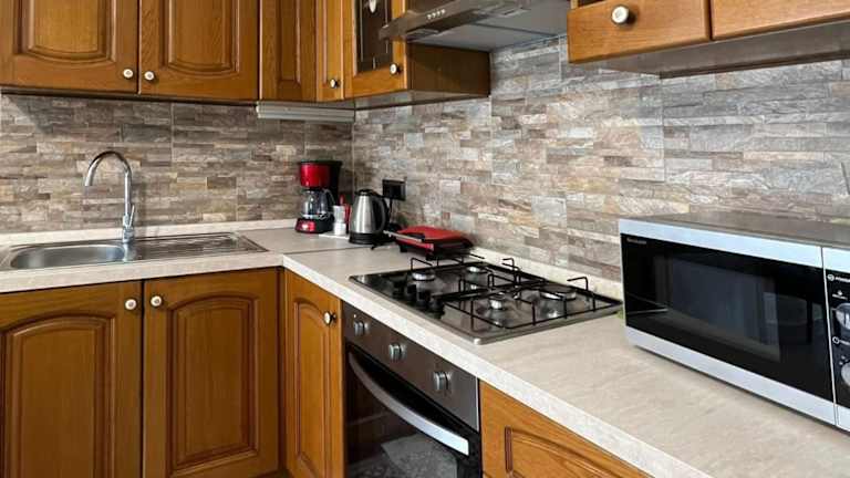 Die Ferienwohnung bietet 1 Schlafzimmer, ein Wohnzimmer sowie eine voll ausgestattete Küche mit Kühlschrank und Wasserkocher. Ein Badezimmer mit Bidet und Dusche steht ebenfalls zur Verfügung. Handtücher und Bettwäsche werden bereitgestellt. Die Unterkunft ist klimatisiert und es sind Nichtraucherzimmer vorhanden.