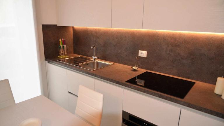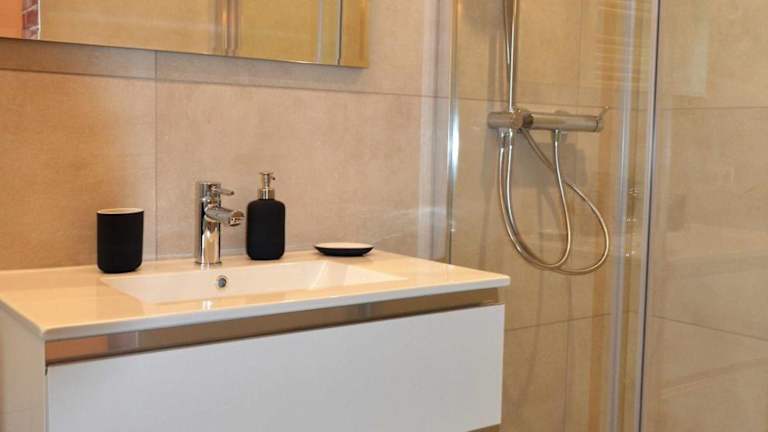 Die Ferienwohnung verfügt über eine voll ausgestattete Küche mit Kühlschrank und Geschirrspüler, sodass eine Selbstverpflegung möglich ist. Die Unterkunft stellt auch Handtücher und Bettwäsche zur Verfügung.