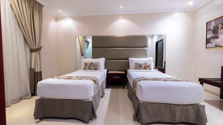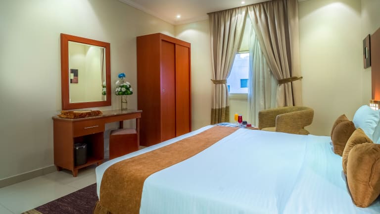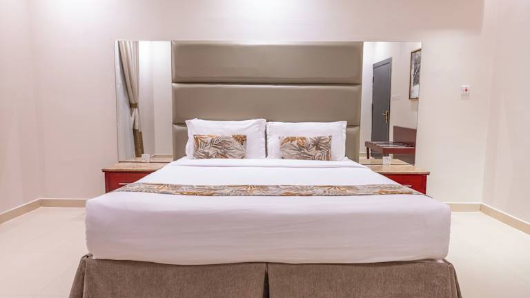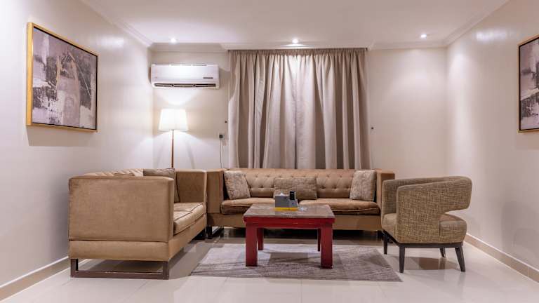 Das Al Muhaidb Residence Al Takhasossi bietet elegant eingerichtete Apartments und Zimmer. Die Unterkunft hat ein heimeliges Ambiente und ist mit dunklen Holzmöbeln sowie Fliesenböden ausgestattet. Check-in ist ab 15:00 Uhr bis 21:00 Uhr möglich, während der Check-out zwischen 10:00 Uhr und 15:00 Uhr erfolgt. Das Mindestalter für den Check-in ist 18 Jahre und Haustiere sind nicht gestattet.