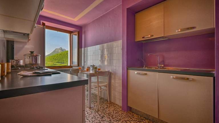 Das Ferienhaus Al Pos - Theater Home bietet eine voll ausgestattete Küche, Bettwäsche und Handtücher. Zudem steht ein TV mit Satellitenkanälen zur Verfügung. Eine Terrasse mit Bergblick lädt zum Entspannen ein.