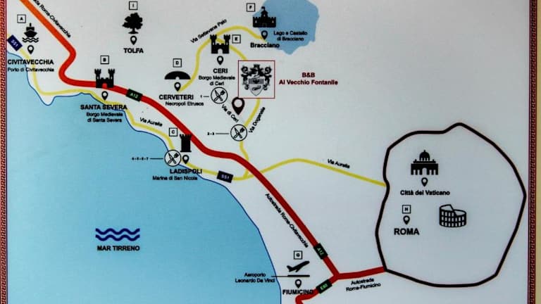 Die Unterkunft Al Vecchio Fontanile B&B befindet sich in der Region Latium in Ladispoli, nur 16 km vom Flughafen Rom-Fiumicino entfernt. U-Bahnhof Battistini liegt 28 km von der Unterkunft entfernt, während der Petersdom 30 km entfernt ist. Für die Anreise wird empfohlen, bei der Nutzung eines Navigationsgeräts die Stadt Cerveteri und nicht Ladispoli einzugeben.
